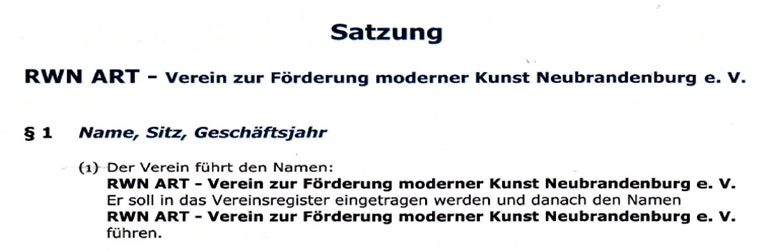Der Verein RWN ART – Verein zur Förderung moderner Kunst Neubrandenburg e. V. wurde am 24. März 2015 in Neubrandenburg gegründet.